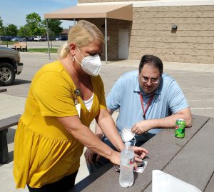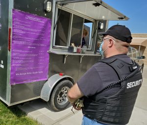 The crowds came out by golf carts, bus and on foot for the great lunch menu offered by Kleinfelder Hots and Brats. The Padre Jose was the big seller. The prices were great and the portions were sizable so no one left hungry. Employees from across the campus including the corporate office enjoyed each other’s company, the sunshine as well as the good food.